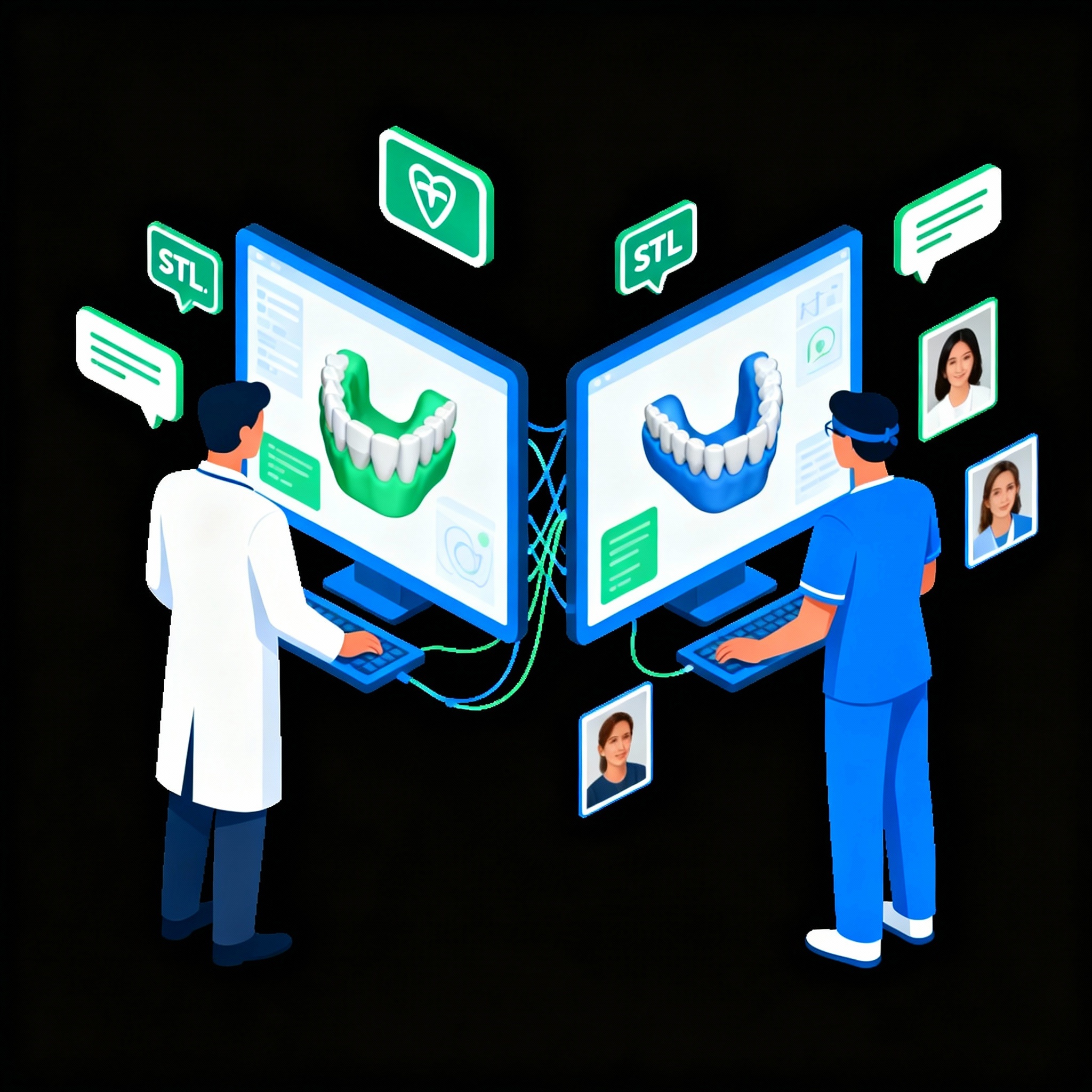 La facilidad de compartir archivos digitalmente con otros especialistas agiliza tratamientos multidisciplinarios. Un caso de rehabilitación completa puede compartirse instantáneamente entre el prostodoncista, cirujano implantólogo y laboratorio, permitiendo planificación colaborativa en tiempo real.